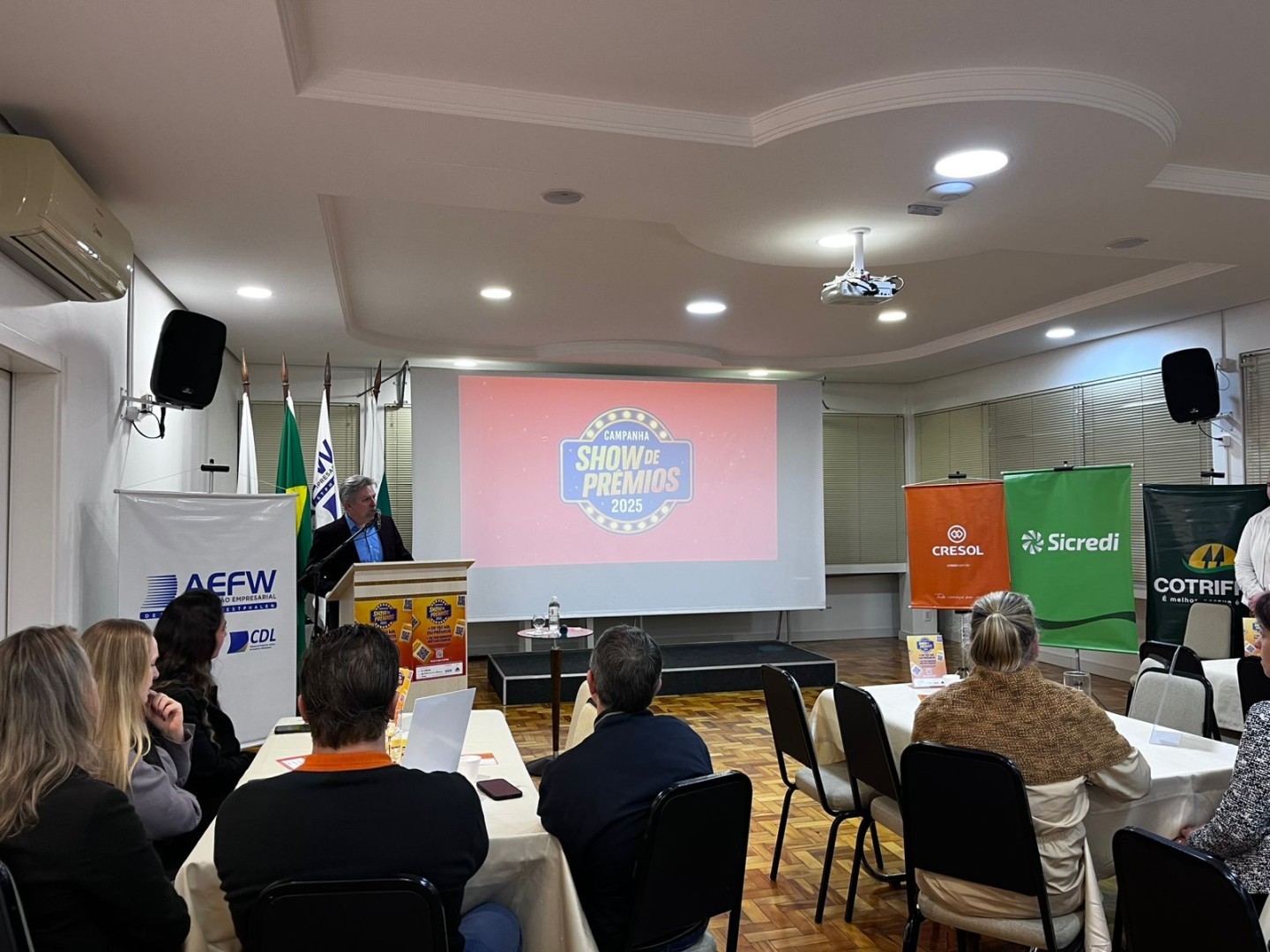 A Cotrifred participou do lançamento da Campanha Show de Prêmios 2025, promovida pela Associação Empresarial de Frederico Westphalen (AEFW), da qual é patrocinadora e apoiadora, juntamente com outras 57 empresas. O evento ocorreu na noite de 22 de setembro, no salão nobre da entidade, com o objetivo de valorizar os patrocinadores e apresentar, de forma detalhada, as informações sobre a campanha.